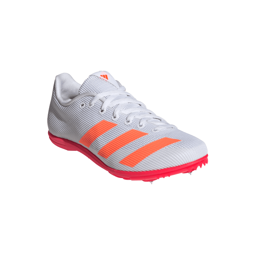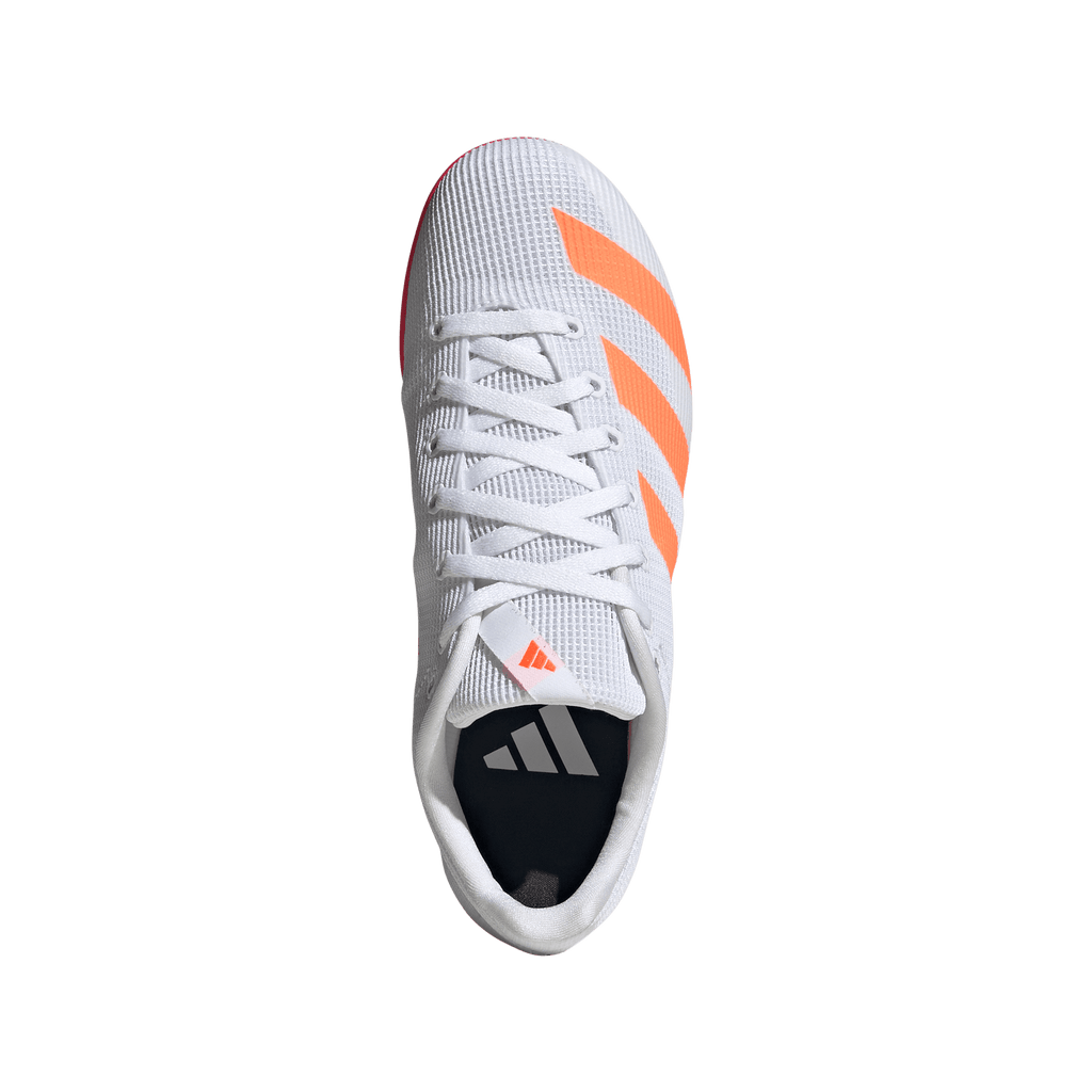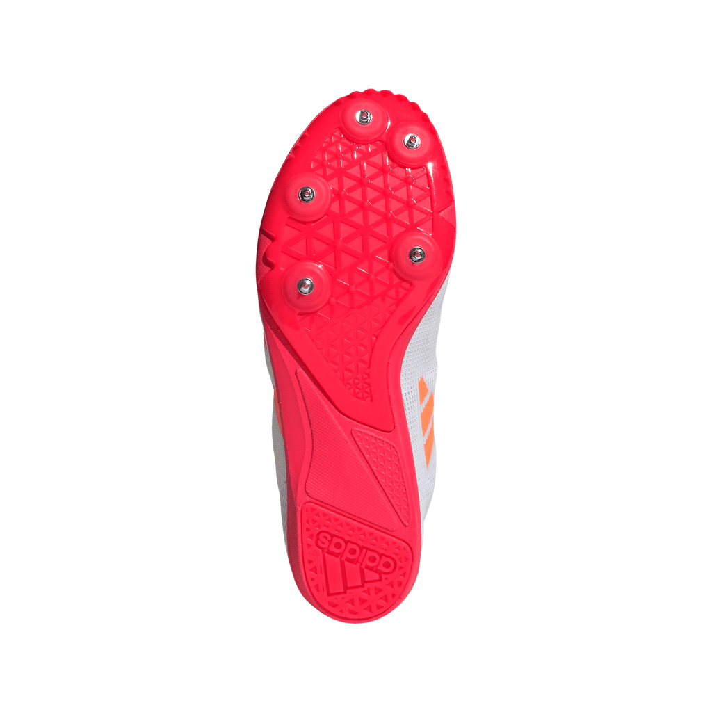 Your biggest competition on meet day is yourself. Bring your top power and speed to every event in these juniors' adidas track and field shoes. They have a comfortable and secure feel, plus a five-pin spike plate that grips any surface. Your new personal best is in sight. Made in part with recycled content generated from  production waste, e.g., cutting scraps and post-consumer household waste, to avoid the larger environmental impact of producing virgin content.