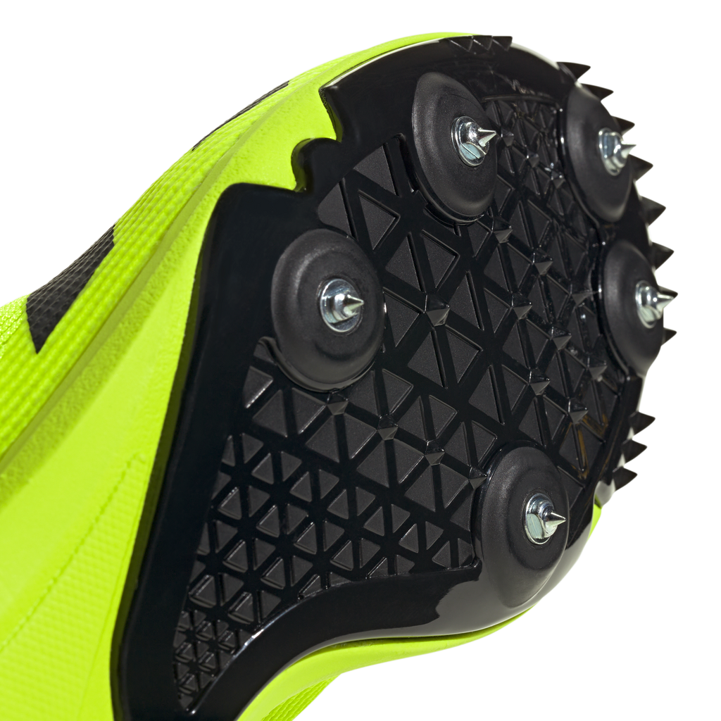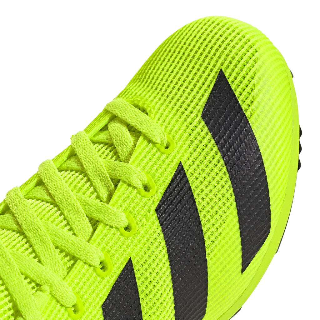 Your biggest competition on meet day is yourself. Bring your top power and speed to every event in these juniors' adidas track and field shoes. They have a comfortable and secure feel, plus a five-pin spike plate that grips any surface. Your new personal best is in sight. Made in part with recycled content generated from  production waste, e.g., cutting scraps and post-consumer household waste, to avoid the larger environmental impact of producing virgin content.