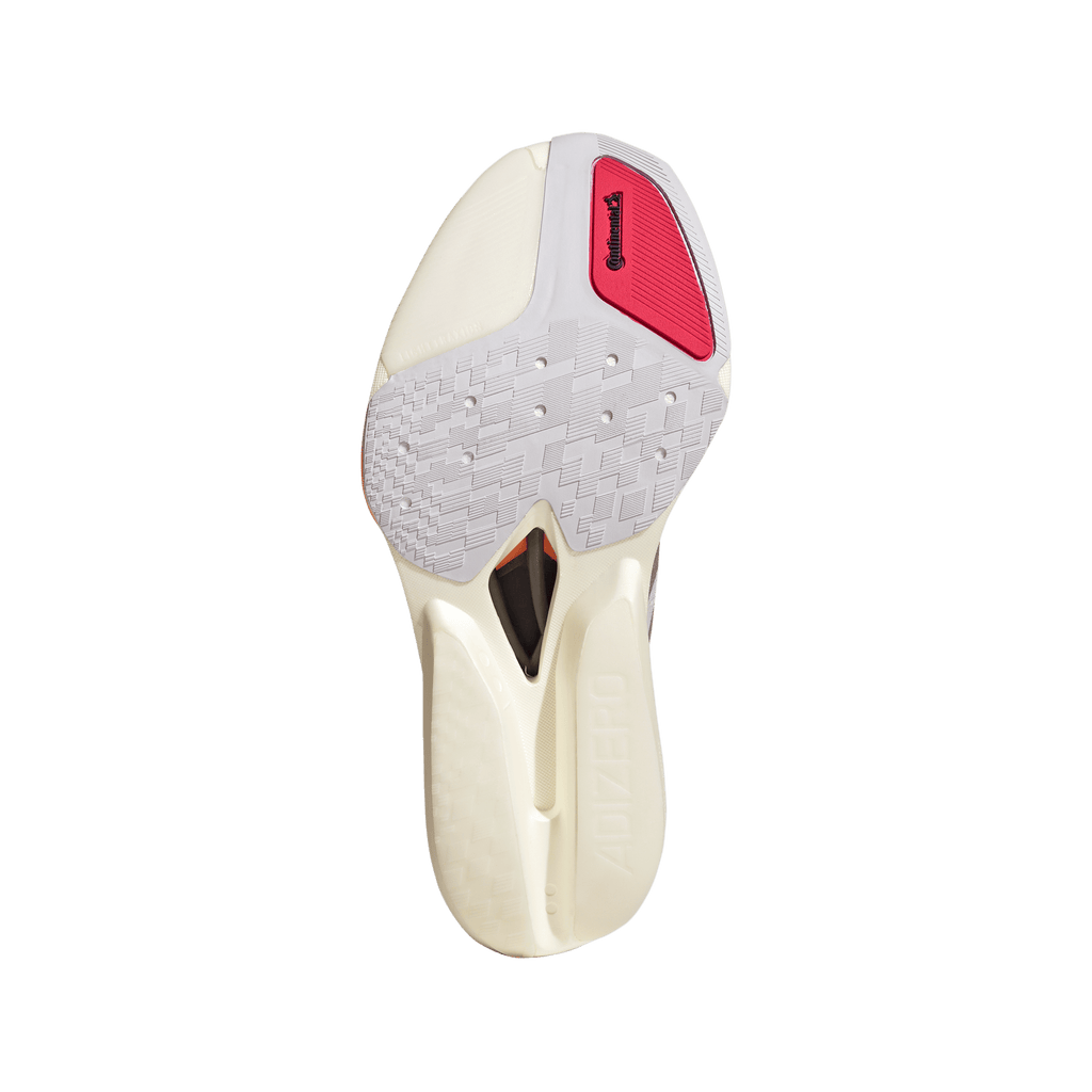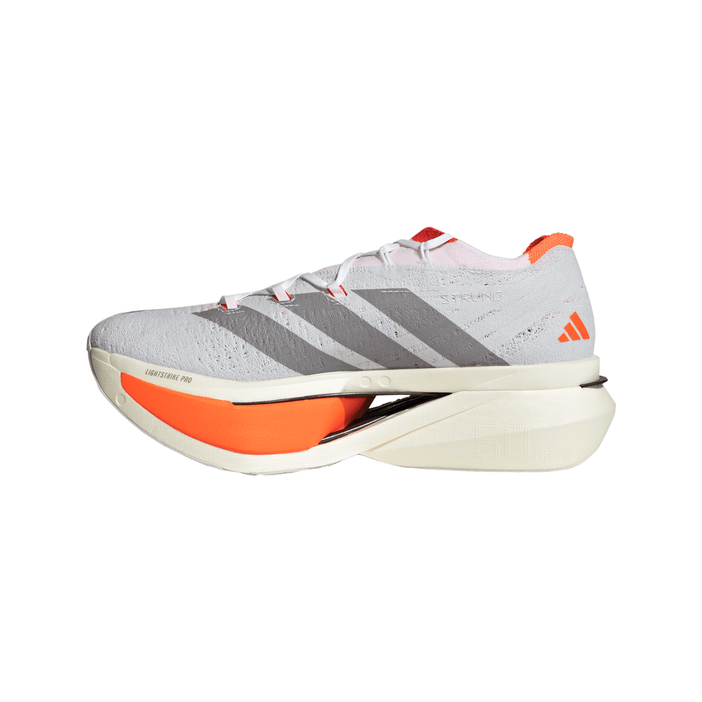 Enter the realm of race-day innovation wearing the Adizero Prime X3 Strung shoes. Engineered for runners who demand the extraordinary, these shoes blend bold design with advanced adidas technology. The Strung upper is precision-built layer by layer, delivering flexibility and adaptive support that moves in harmony with your stride. Experience the sensation of three stacked layers of LightstrikePro cushioning, paired with a top carbon plate and carbon-infused Energyrods 2.0. This combination creates a propulsive underfoot feel, maximising energy return and responsiveness with every step. The Lighttraxion outsole reduces weight and delivers optimal traction, while Continental™ rubber on the toe-off offers confident grip, even at high speeds. Designed for road surfaces, this pair is crafted for those who chase records and crave performance. adidas brings race-day energy to your run, empowering you to push further with every stride.