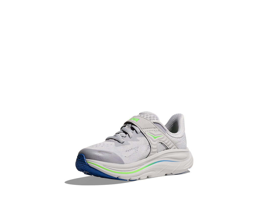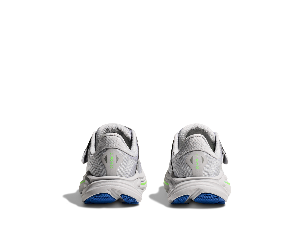 Designed for future flyers, the Clifton 10 delivers the same cushy comfort and cutting-edge performance as our adult style in a slightly smaller package. Featuring foot-hugging performance mesh and an easy in-and-out ankle strap, we’ve cued up a hyper cushy midsole, rugged rubber outsole, and hardwearing toe cap to keep up with the most active of kiddos. Offered in a spectrum of endorphin-chasing hues, the Clifton 10 has been finished with reflective hits to help little ones shine bright.